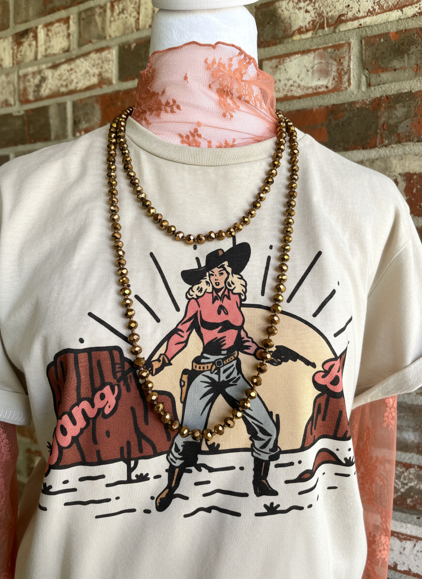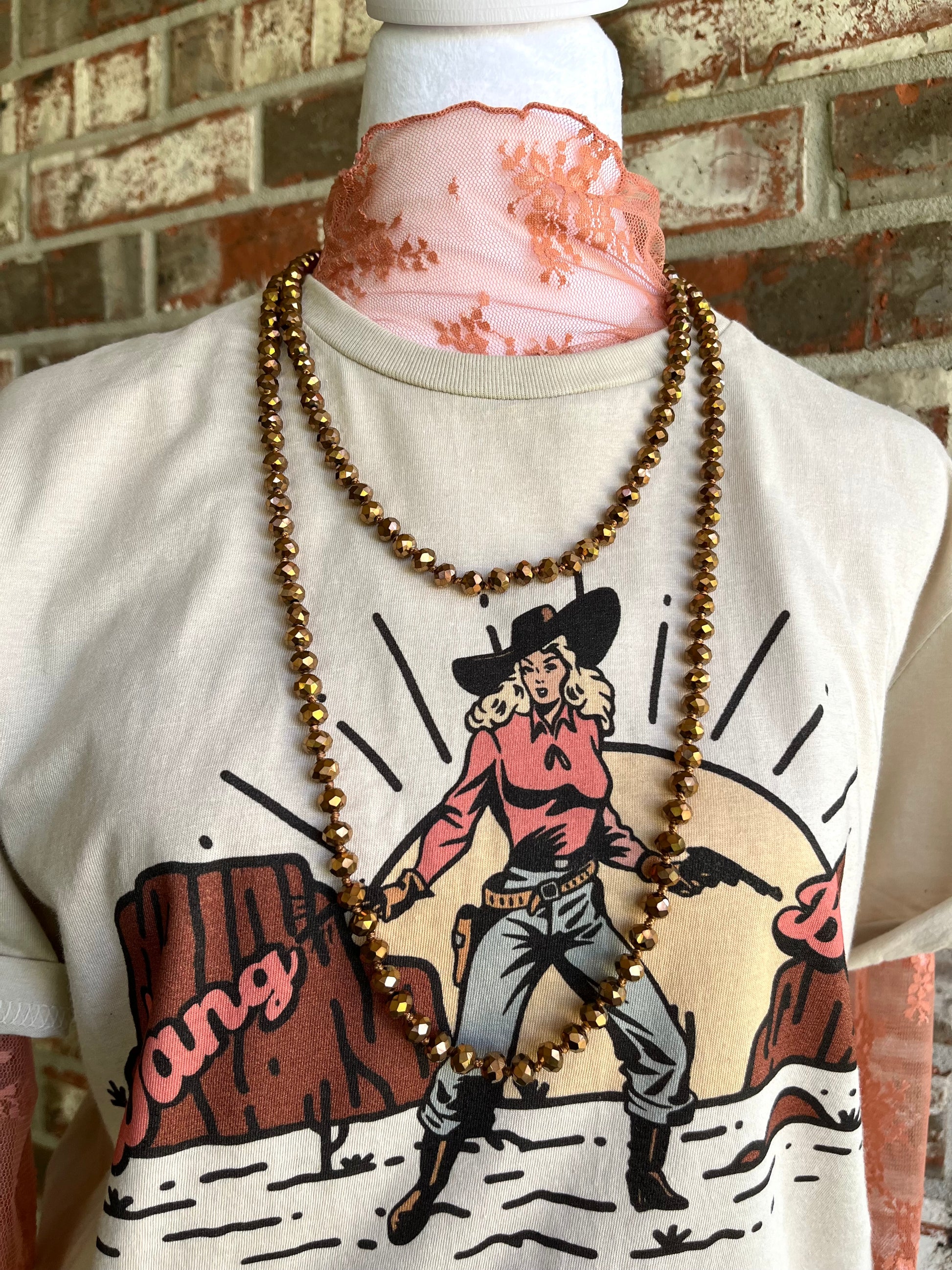 I just love beaded necklaces. They are so fun and versatile. The way the light hits is beautiful, bringing out the brown and gold throughout this strand.